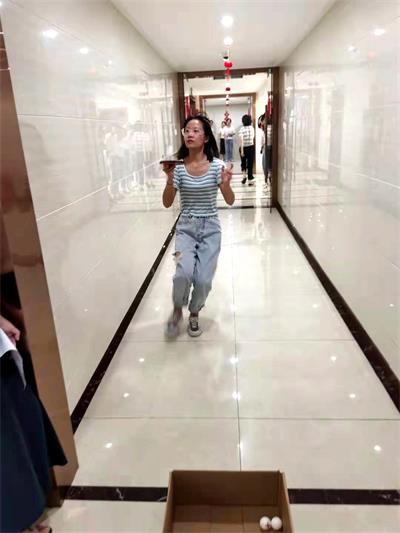 游戲中,所有參賽人員分為四組,每組六人。每小組成員依次使用乒乓球拍將乒乓球顛到指定距離的筐中,在規定時間內成功運送至筐中乒乓球最多的隊,即獲勝,其余名次依次排開。四個小組對抗競爭激烈,充分發揮小組協作精神,爭分奪秒,最終決出一、二、三等獎,公司為獲勝員工準備了相應的禮品。