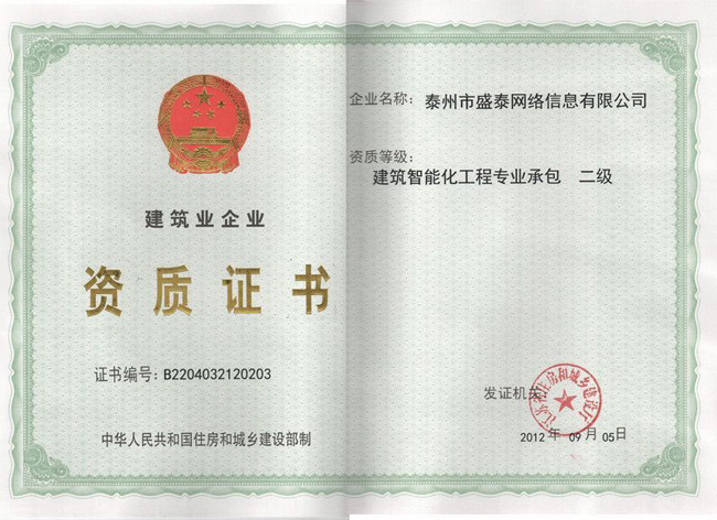 熱烈慶祝泰州市盛泰網絡信息有限公司建筑智能化專業承包資質(二級)申請并獲得通過。這標志著我公司未來將在建筑智能化領域邁開嶄新的一步!同時也預祝公司在未來有更大更快更好的發展!...